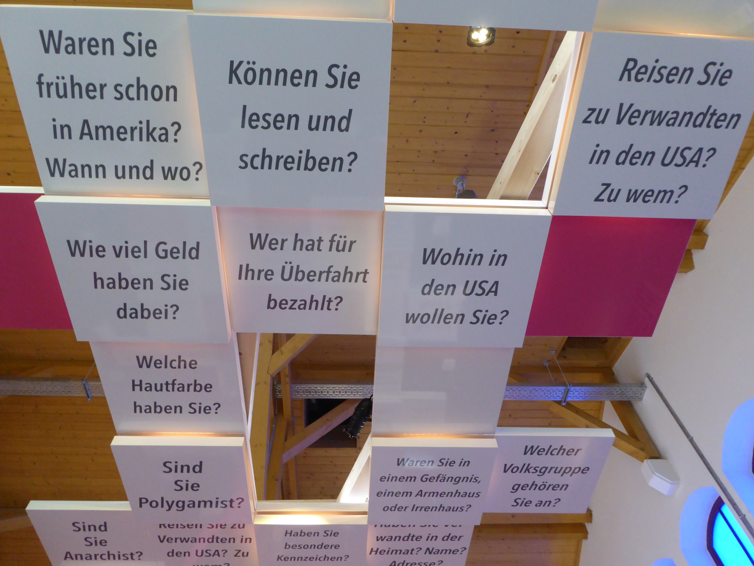 Beim Eintritt hat man eine Extrakarte mit einem Auswanderer bekommen, in meinem Fall eines späteren Musikinstrumententechnikers, der 1926 im Bauch seiner schwangeren Mutter von Oberschlesien über Bremerhaven nach Argentinien auswanderte und dort vor einigen Jahren starb (leider hab ich die Karte verloren und den Namen vergessen). Dessen Biographie kann man unterwegs immer wieder nachlesen.