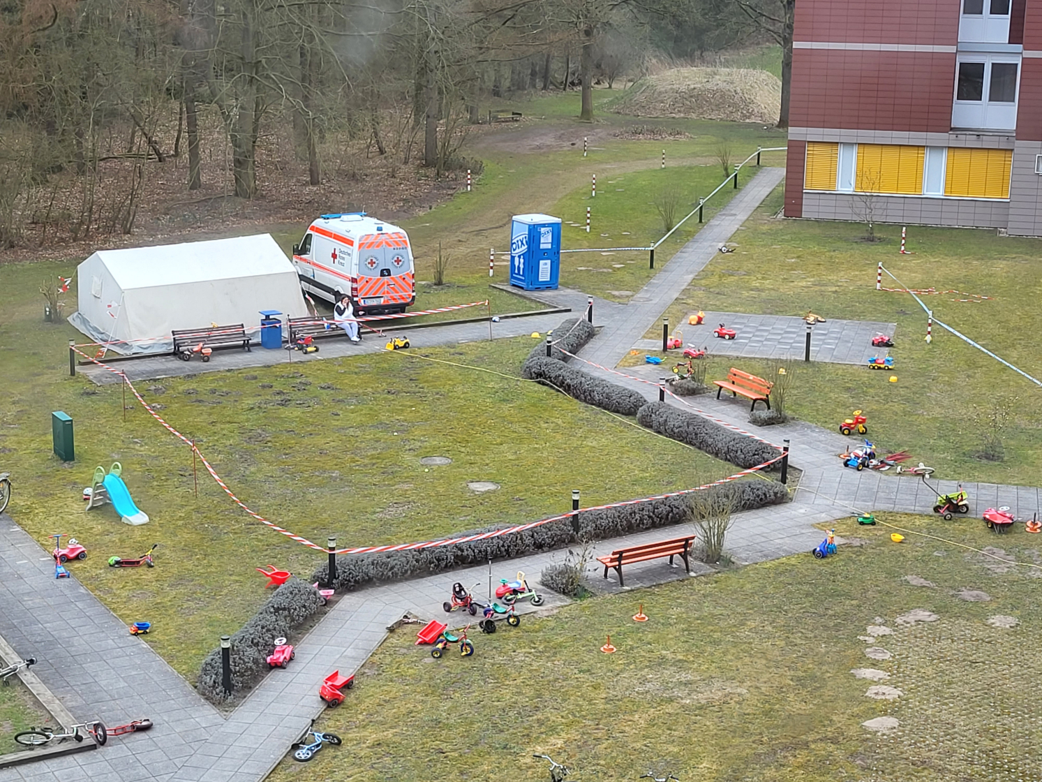 Ob sie bei der Einreise gesund oder krank sind, interessiert erst mal nicht, bei der Aufnahme in Borstel. Lediglich auf Corona werden alle getestet, und wenn positiv in einem Zimmer (die einigermaßen groß sind und alle eine Nasszelle haben) familienweise isoliert, für 7-10 Tage. Sie bekommen dann alles gebracht.