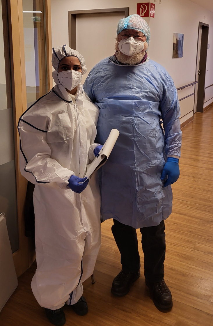 Unsere Verkleidung vor dem Betreten der Isolierzimmer vorletzte Woche ...