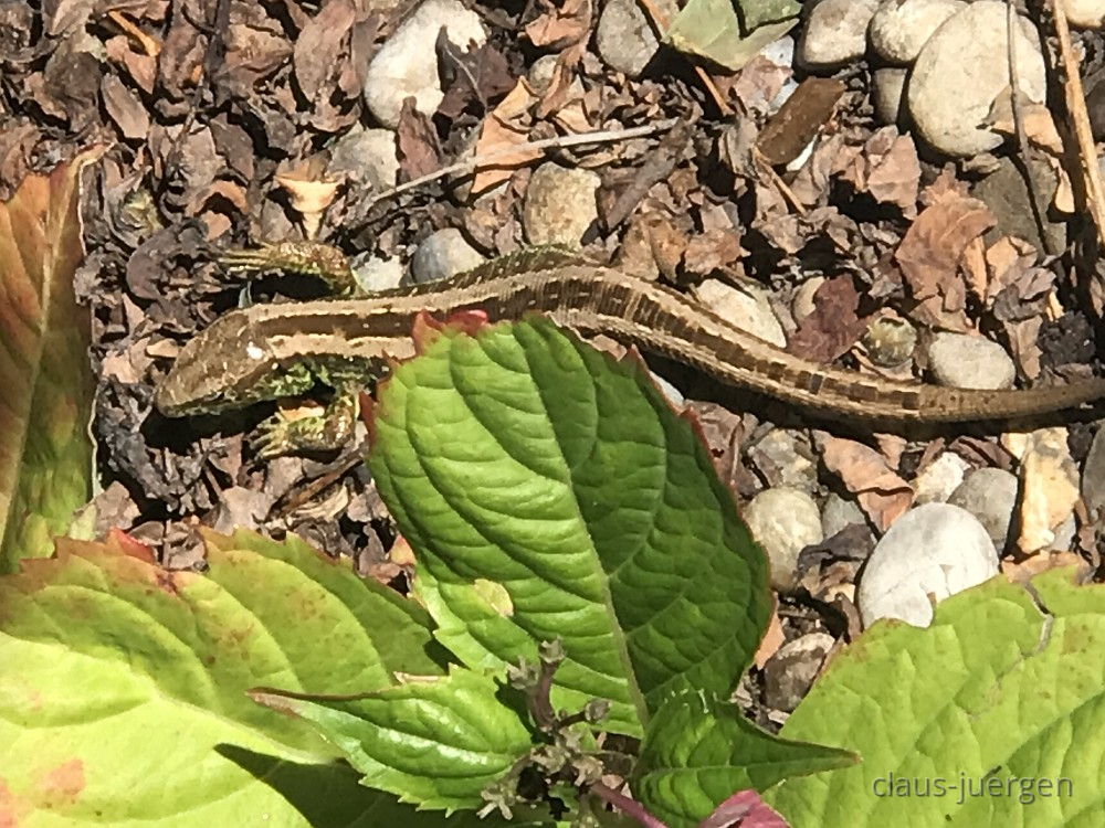 Neulich fand ich doch tatsächlich in unserem Garten neben einer frisch gepflanzten Hortensie diese Zauneidechse. Scheinbar fühlt die sich zwischen den vielen vorhandenen Natursteinen wohl und findet irgendwo auch ein Versteck für den Winter. Das hätte ich nun nicht erwartet.