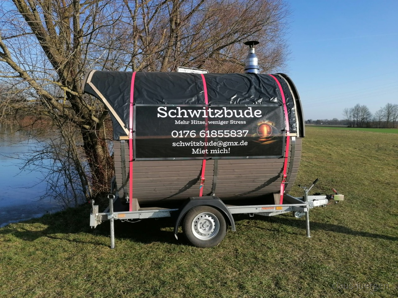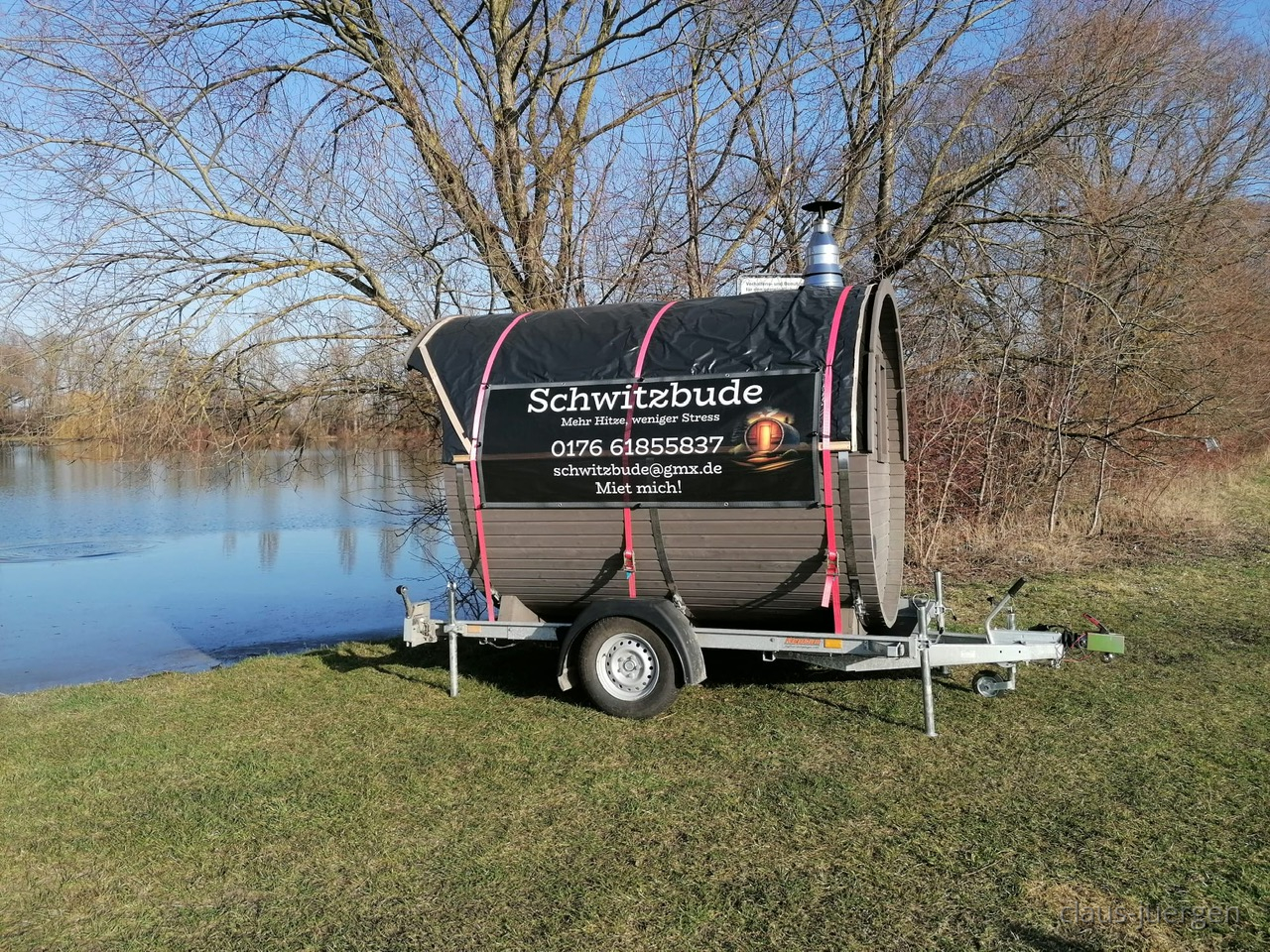 Vor ein paar Tagen war ich am Baggersee unserer Heimatgemeinde. Den hat anscheinend jemand zum Wellnesstempel umfunktioniert indem eine mobile Mietsauna dort aufgestellt wurde. Die Sauna ist mittels eines Holzofens zu beheizen. Nach der Sauna in den kalten See zur Abschreckung ist mal was anderes. Vermutlich liegt die Wassertemperatur jetzt im März noch unter 10 Grad Celsius.