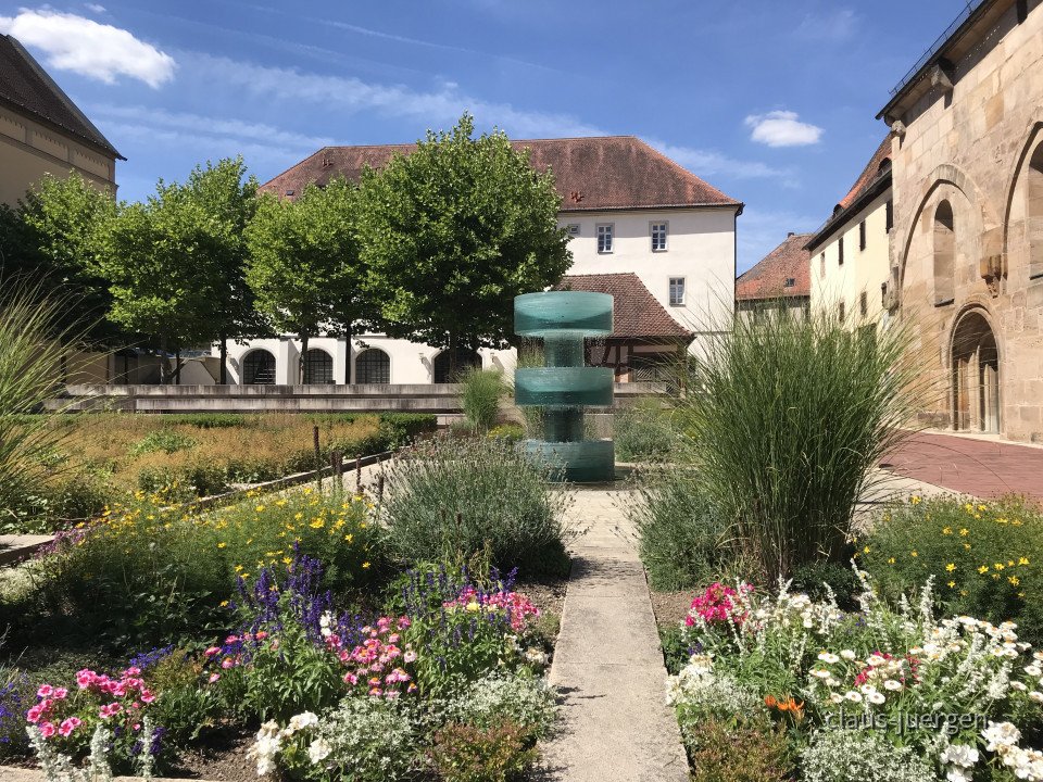 Jetzt werden erst mal die Füße gekühlt bevor es weiter geht auf unserem Rundgang durch Heilsbronn. Links im Bild sieht man das Refektorium, also die ehemalige Kantine der Mönche.