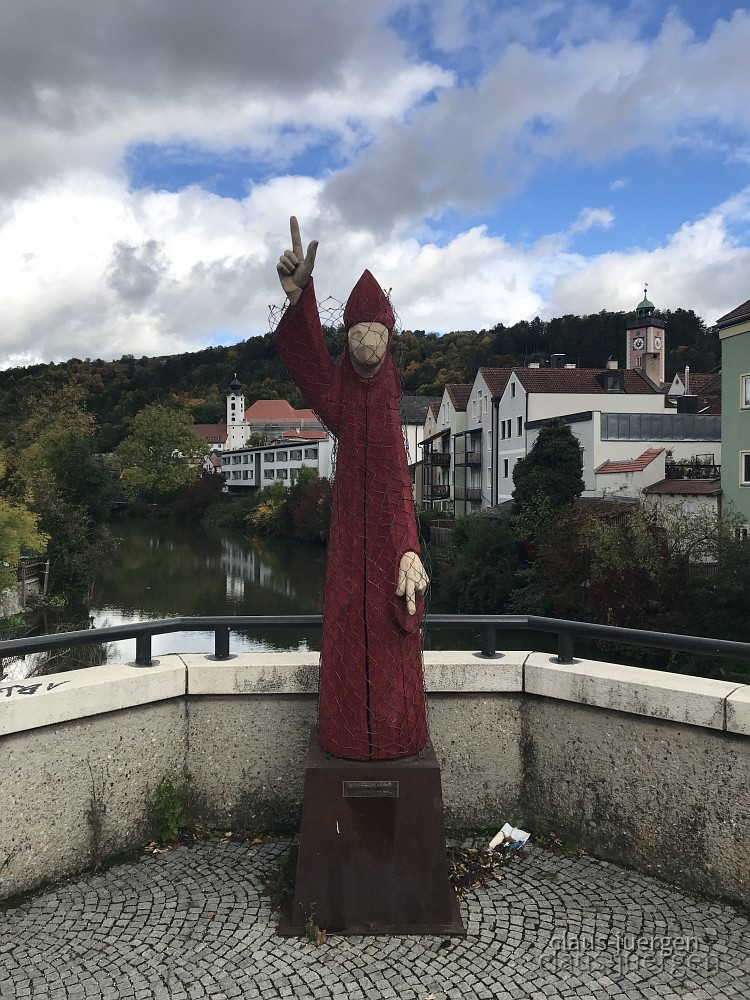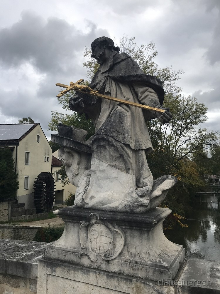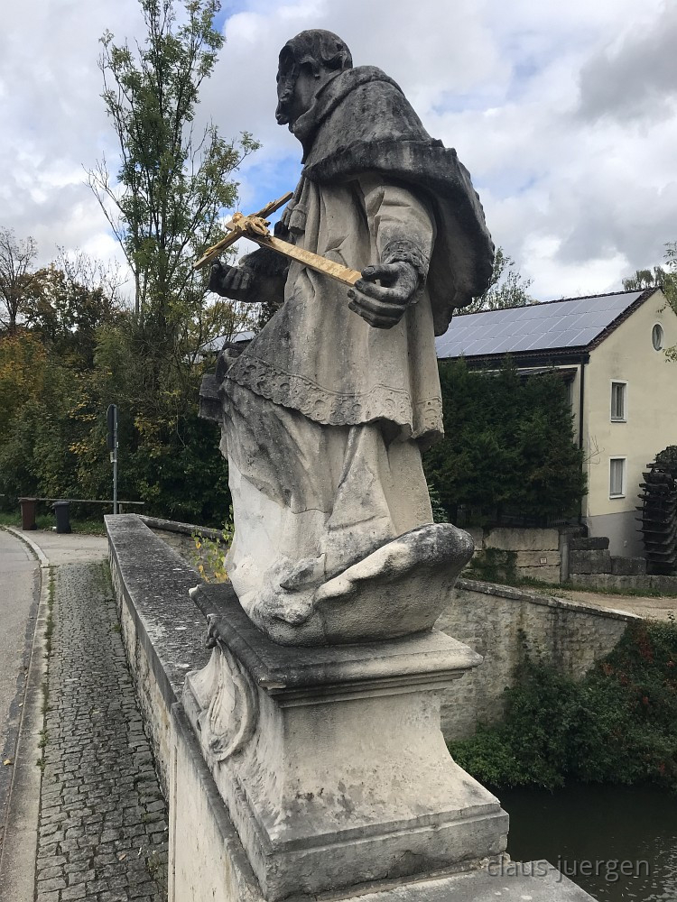 In Eichstätt wo ich mich gestern durch den Stau gequält habe gibt es an drei Brücken Nepumukfiguren. Eine davon an der Brücke über die Altmühl an der Aumühle.