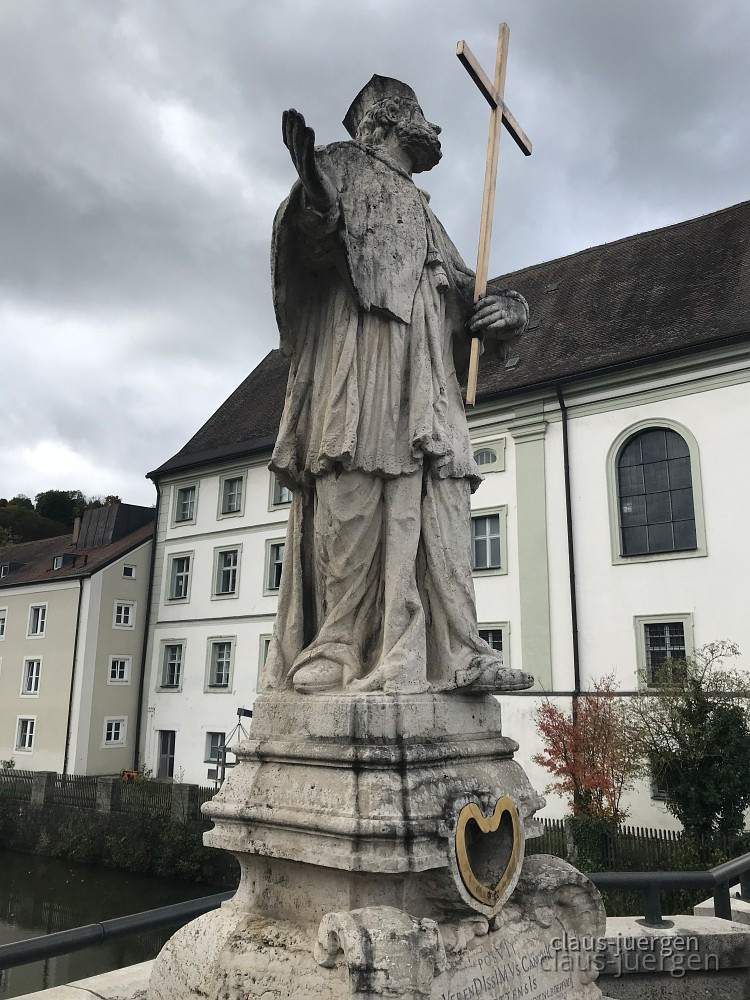 In Eichstätt wo ich mich gestern durch den Stau gequält habe gibt es an drei Brücken Nepumukfiguren. Eine davon an der Brücke über die Altmühl an der Aumühle.