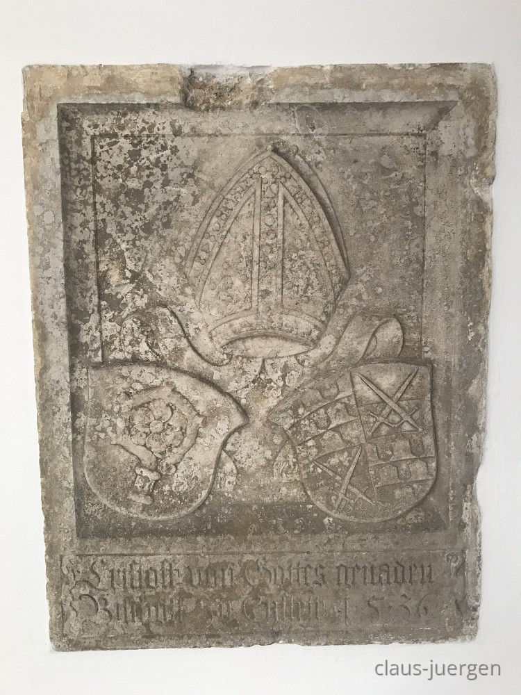 In die Wand daneben ist eine Steinplatte eingelassen deren Inschrift möglicherweise mit dem Bistum Eichstätt zu tun hat.