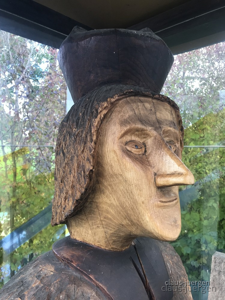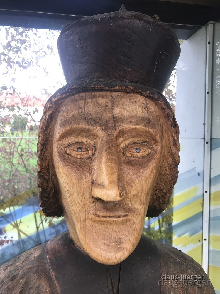 Der Holzschnitzer hat sich in der Figur auch verewigt.