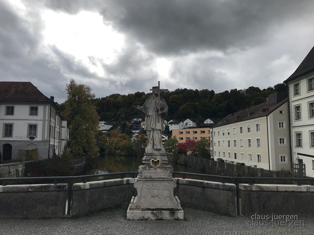 Der Fluß verläuft heute ein paar Meter daneben. Nepomuk ist noch da.