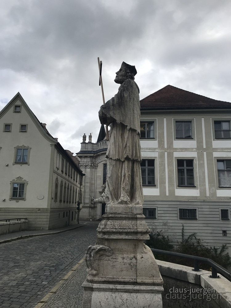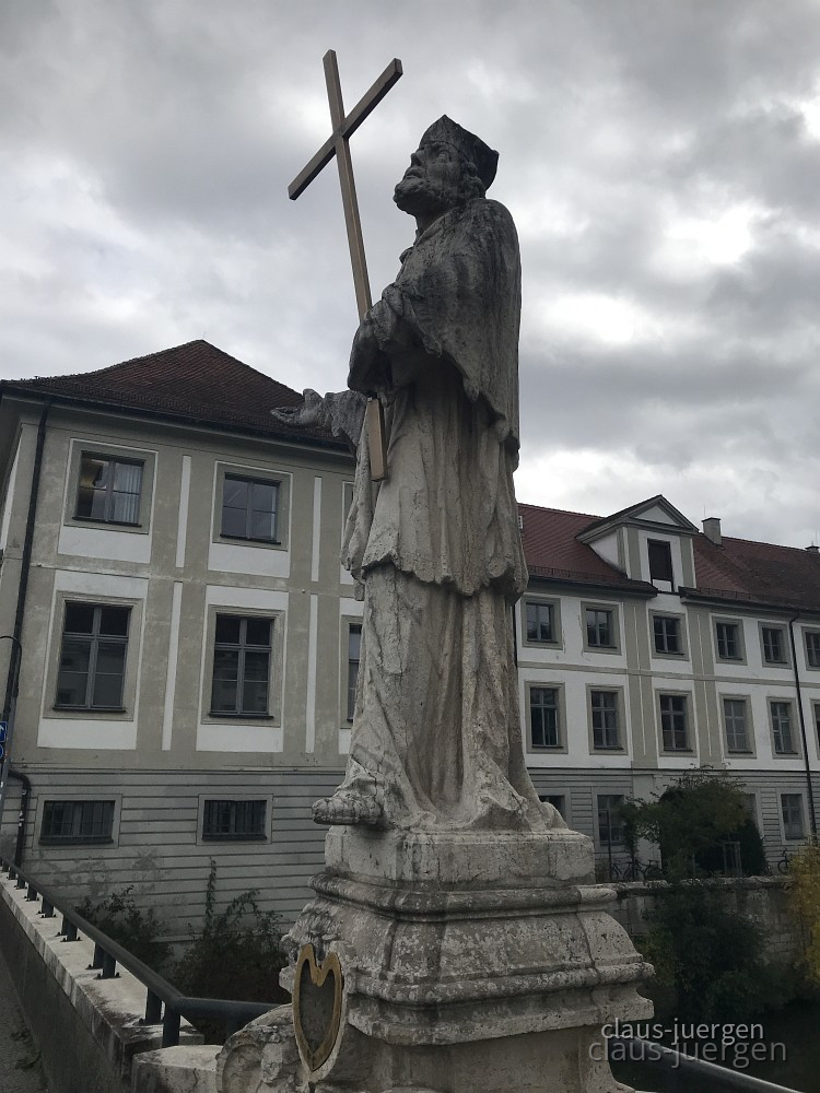 In Eichstätt wo ich mich gestern durch den Stau gequält habe gibt es an drei Brücken Nepumukfiguren. Eine davon an der Brücke über die Altmühl an der Aumühle.