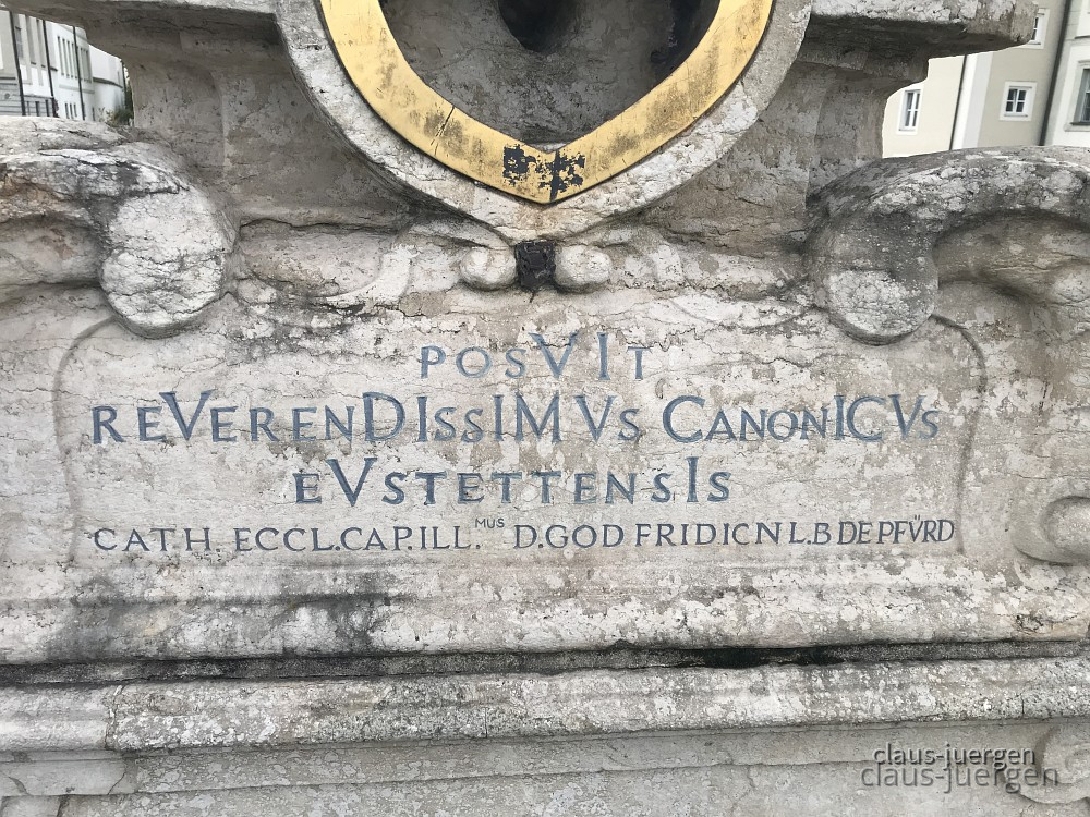 Im Sockel befindet sich möglicherweise das Wappen des Bischofs von Eichstätt.