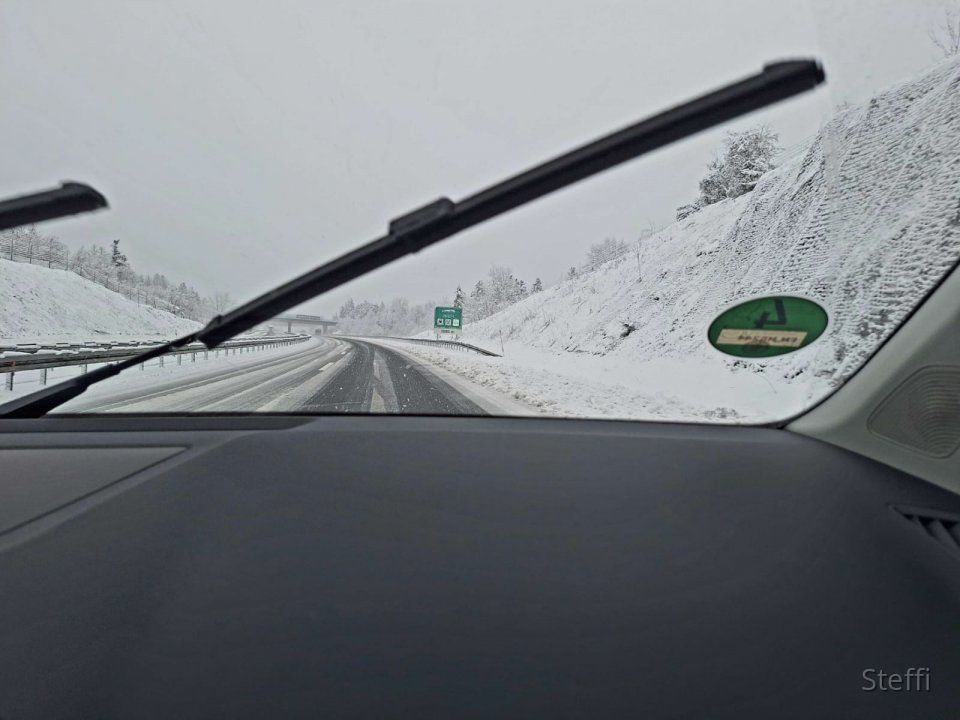 Bis kurz vor Zagreb lief es ganz gut, dann standen wir im Stau 1 Stunde, Baustelle und hohes Verkehsaufkommen. Danach lief es gut bis ungefähr Modrus, da fing es an zu schneien.
