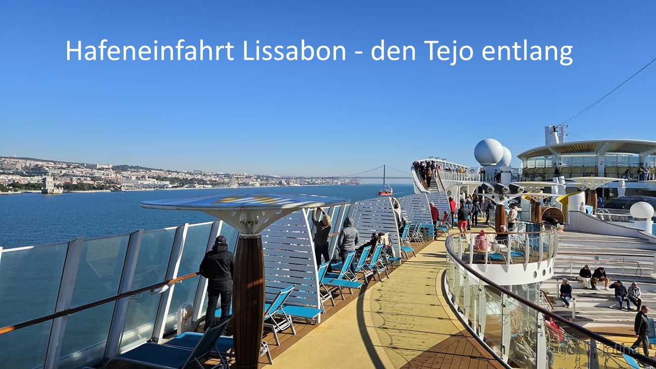 Während unserer Dezember-Kreuzfahrt 2024 wurde auch Lissabon angelaufen. Ich zeige Euch zuerst die herrliche Fahrt durch den Tejo. Sie begeistert mich immer wieder, vor allem bei blauen Himmel.