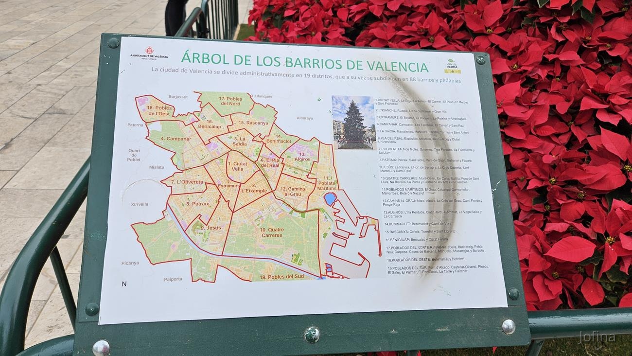 Einen Weihnachtsbaum, der die Stadtteile von Valencia anzeigt: