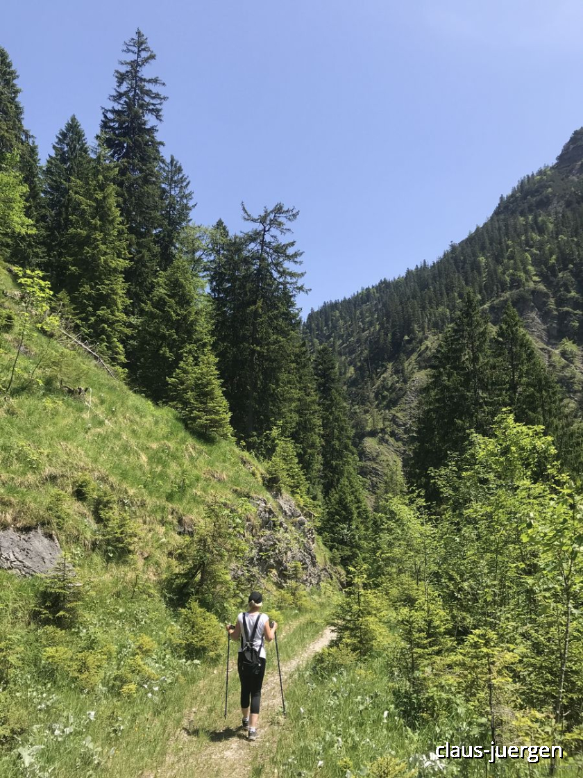 Das Graswangtal ist vermutlich den wenigsten ein Begriff. Wenn ich euch erzähle, daß dieses Tal zur Klostergemeinde Ettal gehört und dazu mittendrin das bekannte Schloß Linderhof liegt dann denkt sicherlich so mancher "Aha, da ist das also". Wir sind vor ein paar Tagen in diesem Tal auf einem einfachen Weg gewandert und wollten eigentlich bis zur unbewirtschafteten Kuchelberghütte gehen. Aber das ist nicht ganz so einfach.