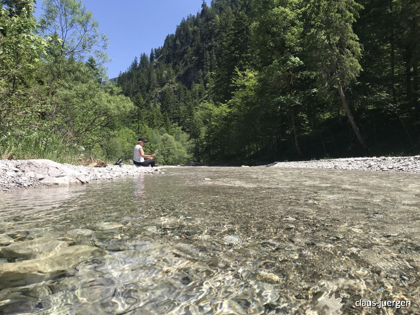 Nach der verdienten Stärkung verweilen wir etwas am Bach um die Füße im Wasser zu kühlen.
