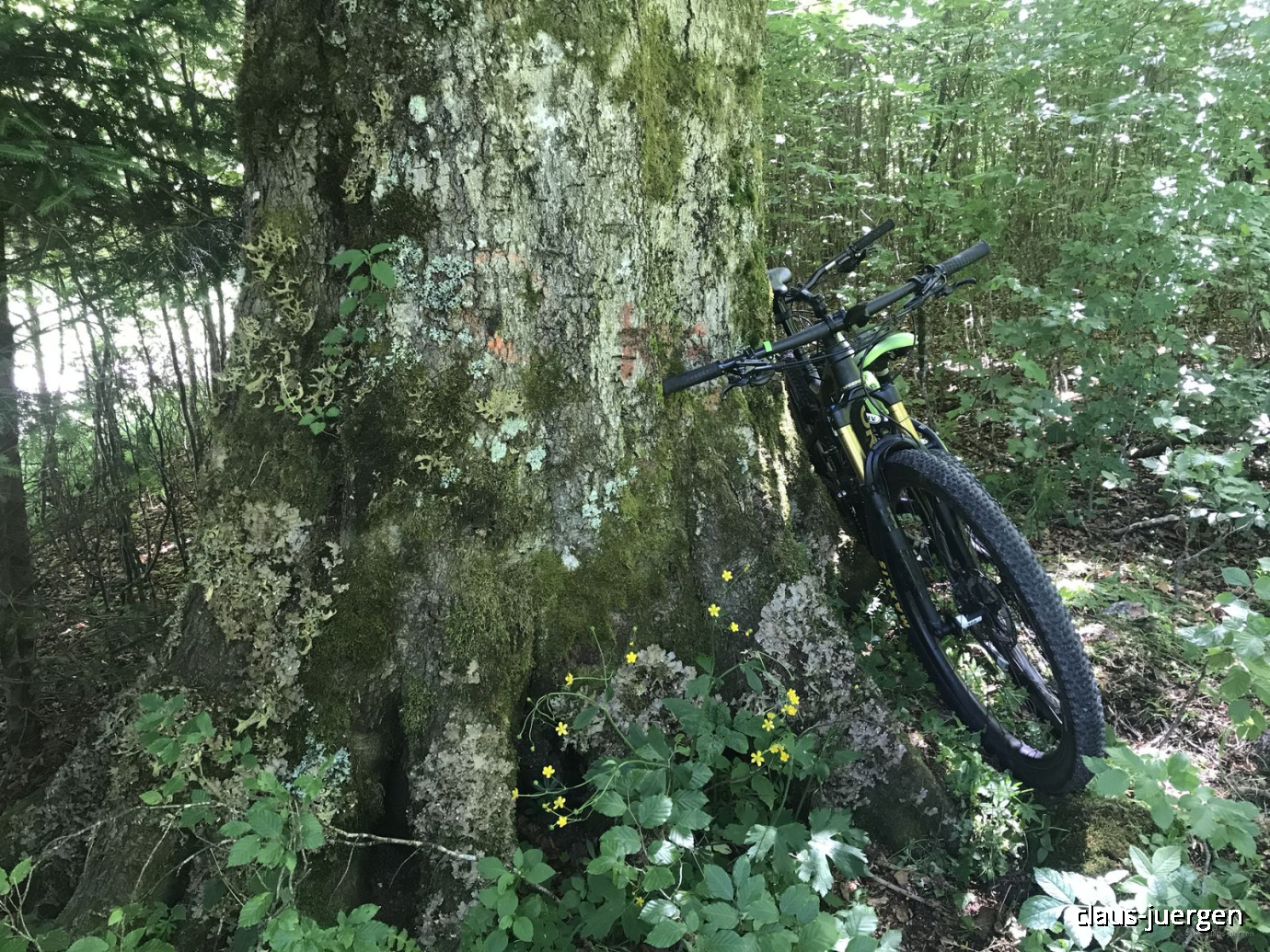 Schließlich finde ich den schmalen Pfad wo es hinauf geht zur Hütte und zum Gipfel. Profis sparen sich den einstündigen Weg durch den Wald und nehmen das Rad. Beim nächsten Besuch dieser Gegend bin ich schlauer und finde diesen Pfad.