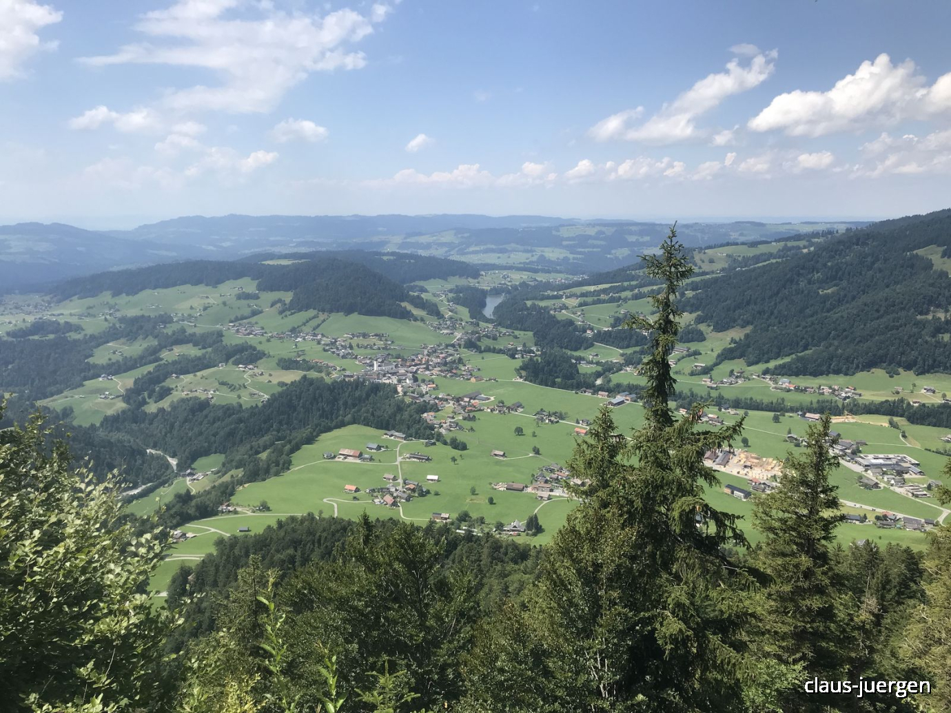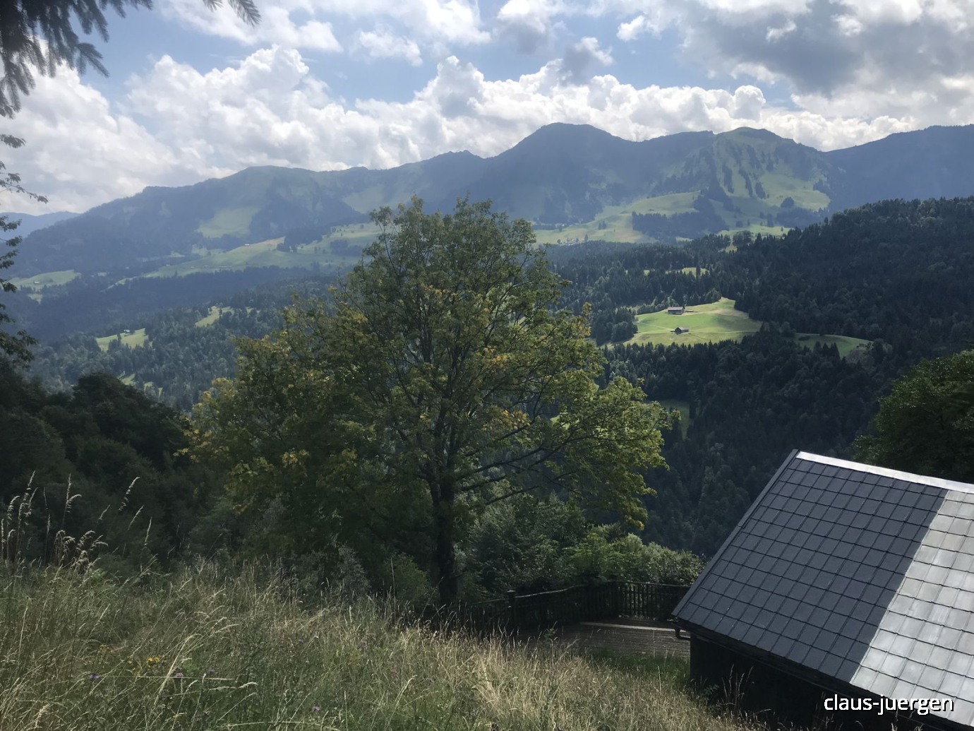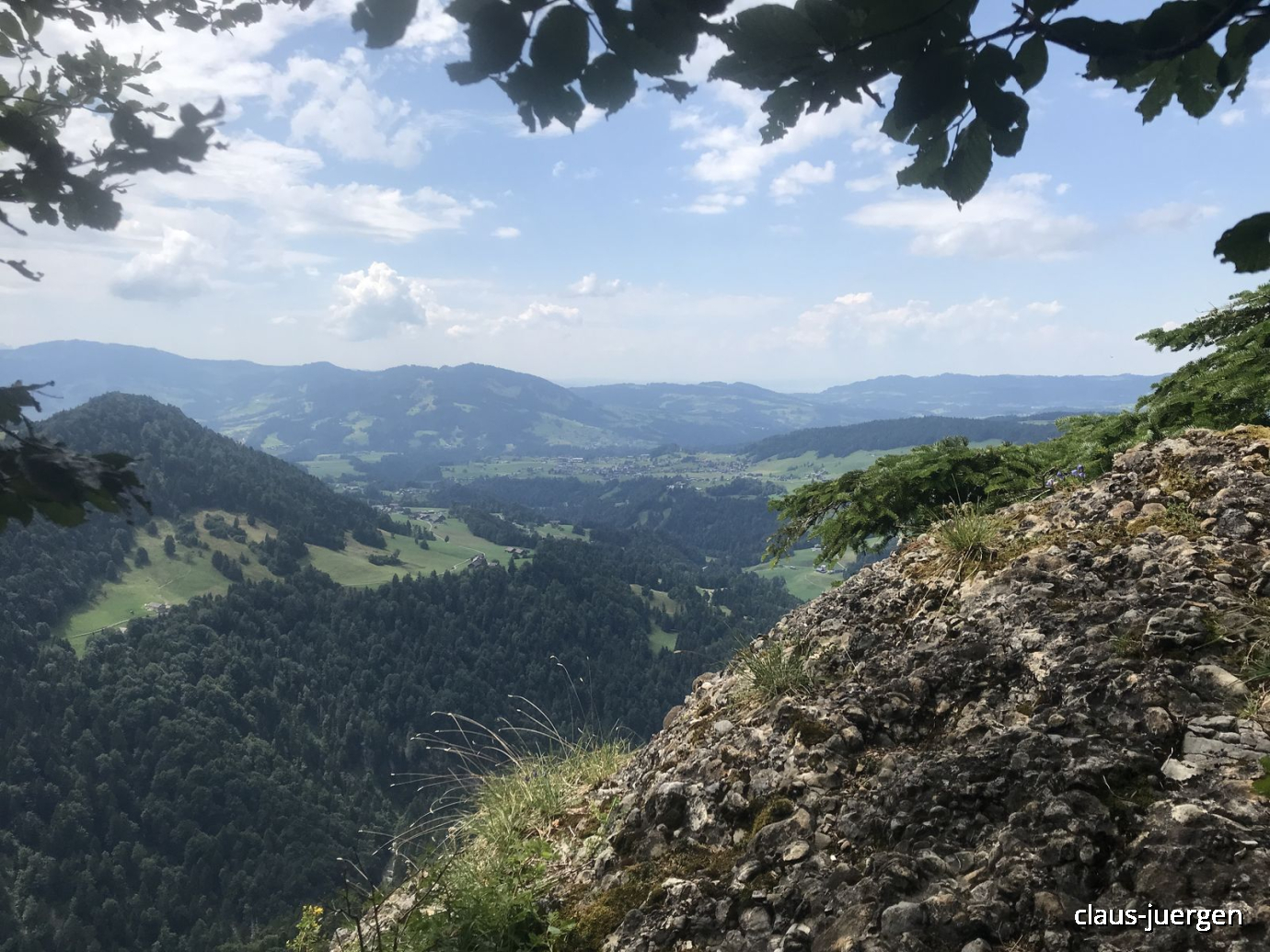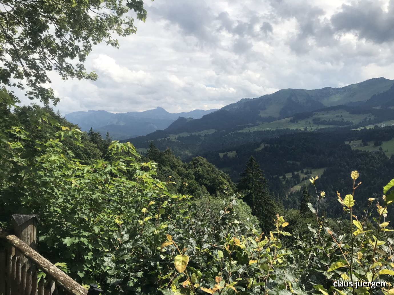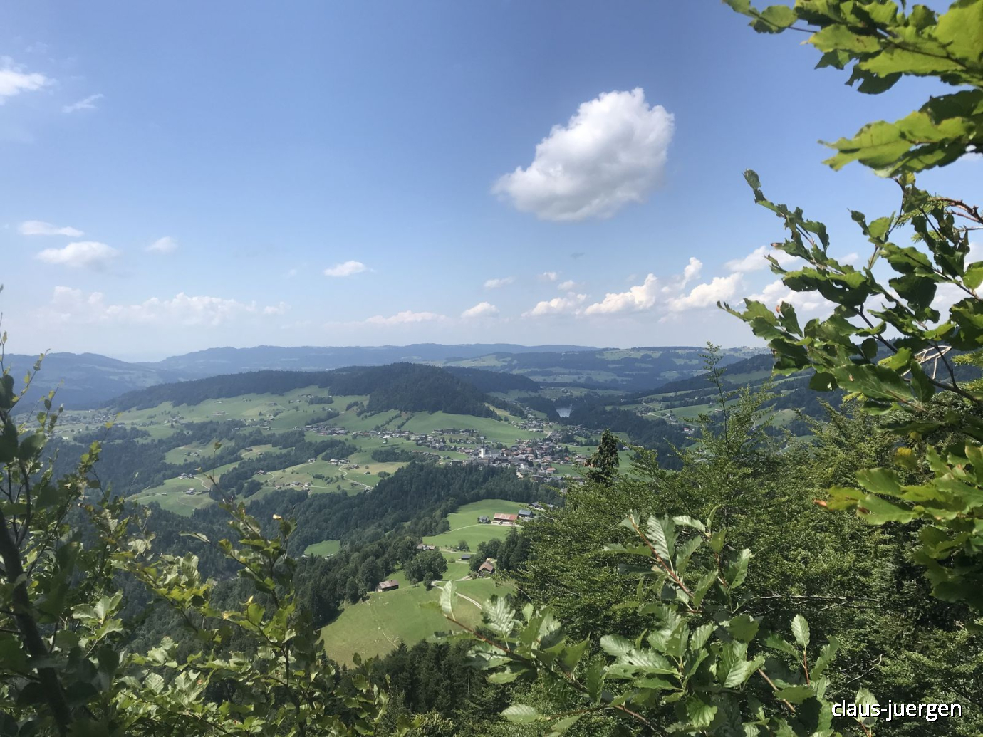 Ab und zu kann man einen Blick durch eine Lichtung auf den Bregenzerwald rund um Hittisau erhaschen.