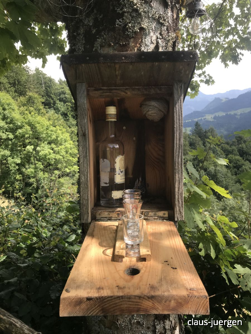 Nachdem die Bank am Gipfel besetzt ist gehen wir zurück um auf der Gfrerenalpe unsere Brotzeit einzunehmen.