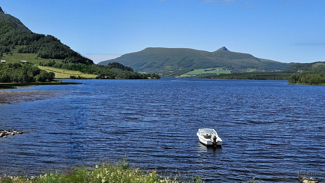 Zunächst ein Foto vom Schiff mit Blick auf den Fjord und die Berge im Hintergrund. Das Wetter war fantastisch. :love: