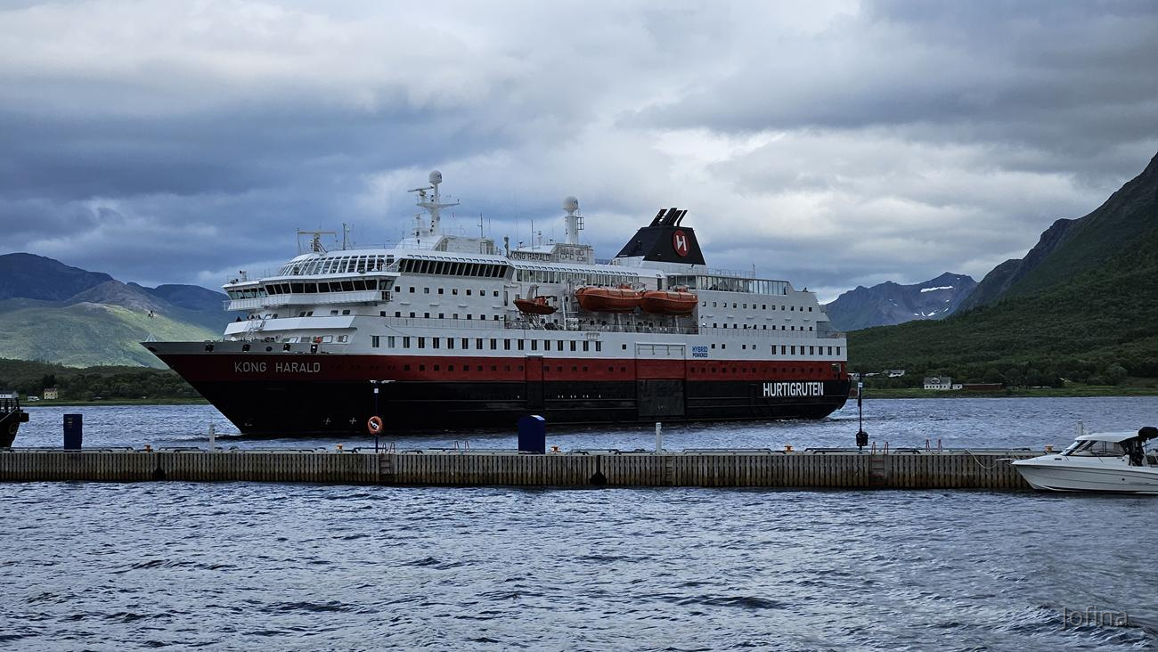 Ein Hurtigrouten-Schiff lief auch gerade ein. Balkons scheinen sie für die Kreuzfahrer gar nicht oder kaum zu haben.