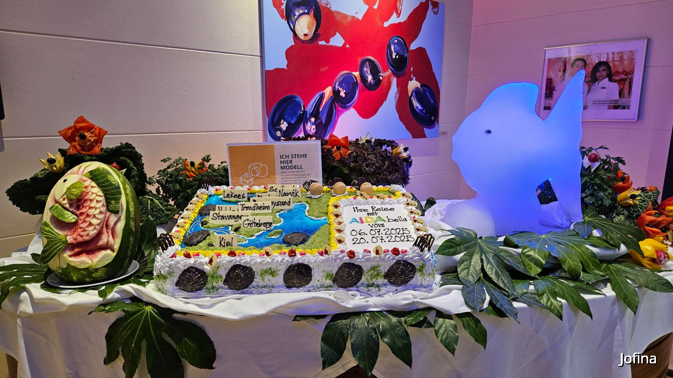 Am Abend wurde unsere Kreuzfahrt direkt vor dem Restaurant wieder als Kuchen dargestellt.