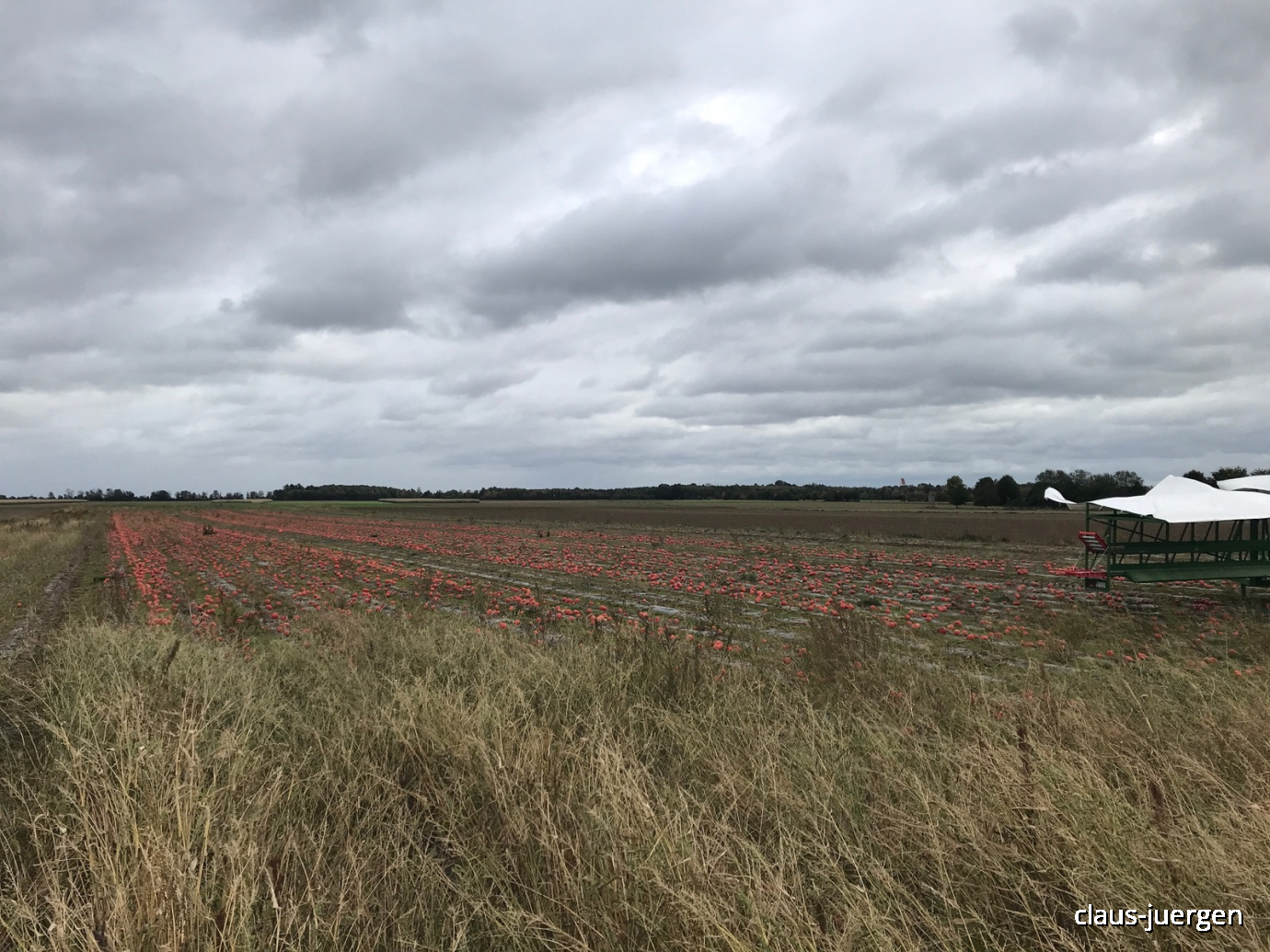 Mich persönlich erstaunt, dass hier nun Kürbisse angebaut werden. In meiner Heimat findet sich um diese Jahreszeit an sehr vielen Landstraßen ein unbesetzter Verkaufsstand wo Kürbisse aller Art angeboten werden. Halloween macht es möglich, dass man mit dieser Frucht anscheinend auch Geschäfte machen kann. Ursprünglich dachte ich tatsächlich, dass dies eine Art Nebenerwerb für Bauern der Region ist.