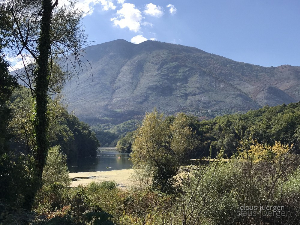 Nun kostet hier zwar das Parken bis drei Stunden 300 Lek, also 3 Euro. Aber auch das ist Albanien. Es gibt keine Parkuhr oder Schranke. Man bezahlt bei der Einfahrt in den Parkplatz bei einem Bediensteten und niemand überprüft wie lange der Pkw dort steht. Wir sind übrigens zwei Stunden hier gewesen weil wir den teils abenteuerlichen Rundweg ums Wasser genommen haben.