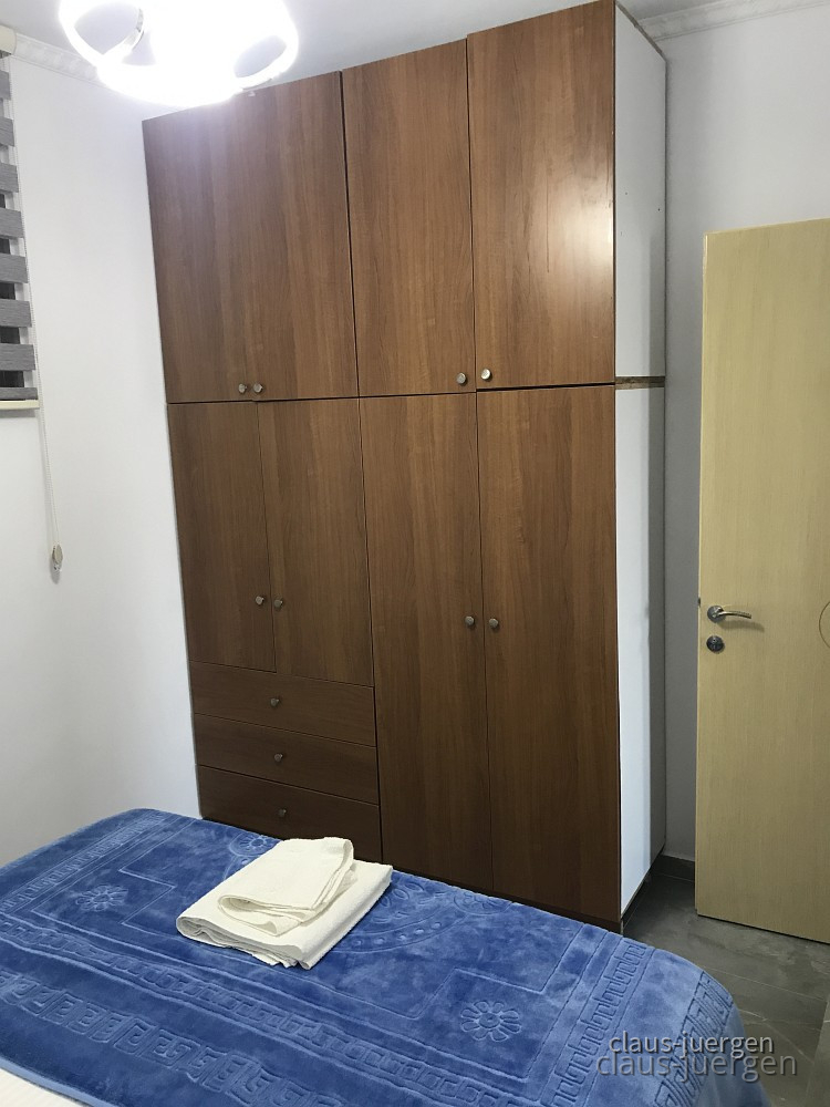 Das Wohn- und Schlafzimmer. Den Fernseher haben wir nicht genutzt. In der Wohnung herrscht wie auch in derjenigen in Vlora die wir später bezogen Rauchverbot. Das ist schon wichtig weil ich den Eindruck habe, daß sehr viele Albaner rauchen.