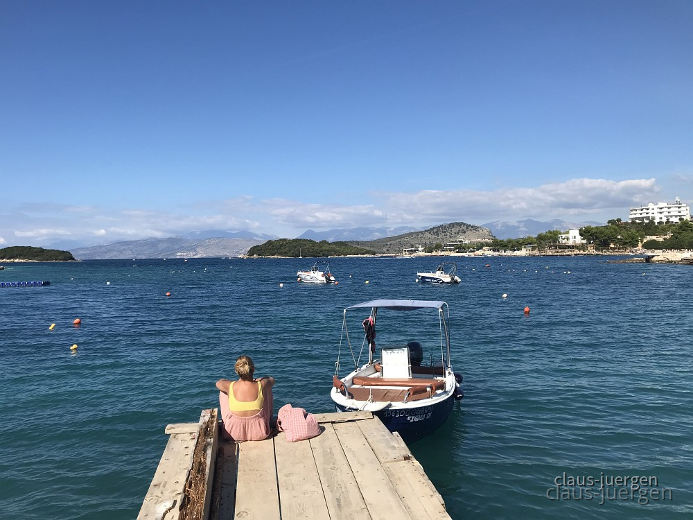 Im Hintergrund ist der Ksamil Beach mit ein paar Hotels zu erkennen.