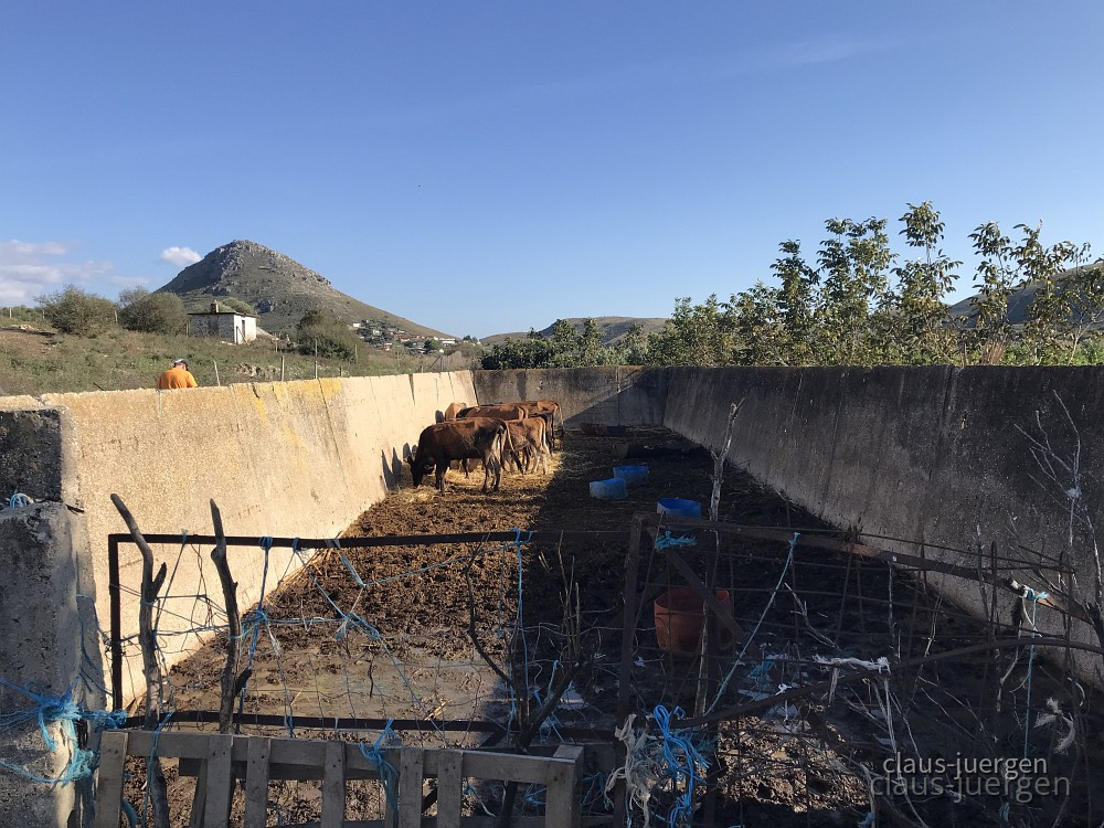 Das war anscheinend mal ein Wasserbecken zur Bewässerung. Da drin grast nun der bescheidene Viehbestand des Bauern.