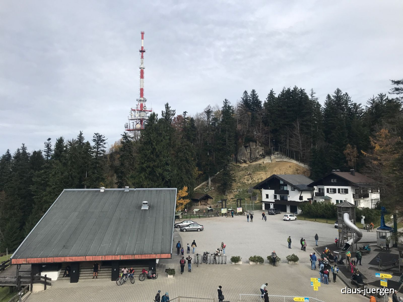 Der Sendemast im Hintergrund ist unser Ziel und wie zu erwarten von mindestens 1000 anderen Besuchern an diesem Tag ebenfalls.