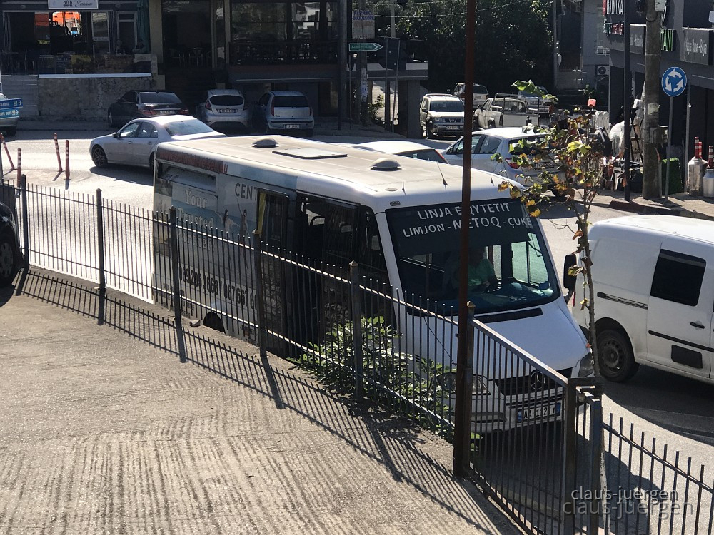 Solche Kleinbusse wie hier einer geparkt ist fahren anscheinend auf eigene Rechnung bestimmte Strecken ab und werden von den Einheimischen genutzt. Der Fahrer hat hier ein Weilchen geparkt, ist ins Cafe gegangen und irgendwann ging es dann mit wenigen Passagieren die einstweilen im geöffneten Fahrzeug Platz genommen haben weiter.
