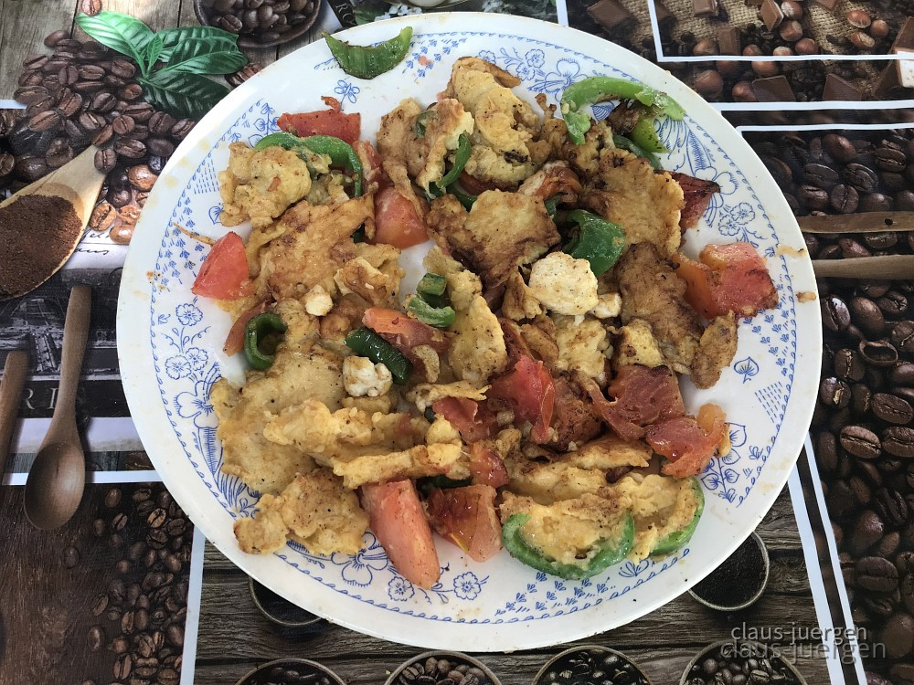Natürlich dauert es ein gutes Weilchen bis uns dieses späte Frühstück dann serviert wurde. Aber erstens haben wir Zeit und zweitens freut es mich immer wieder, wenn wir Touristen auch abseits der Hotspots die Einheimischen etwas Geld verdienen lassen.
