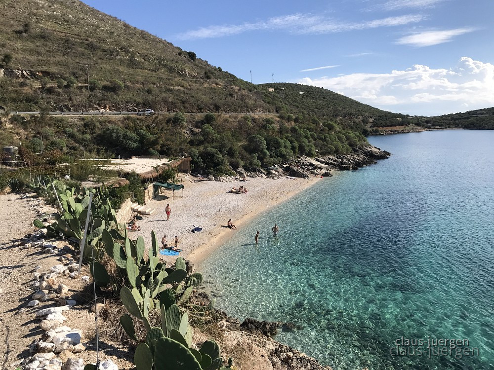 Nach vier Tagen in Saranda wo wir die Umgebung bei ein paar Ausflügen erkundet haben ging es nun weiter nach Norden zu unserem nächsten Quartier in Vlora. Das ist immerhin die sechstgrößte Stadt Albaniens. Der Weg dahin führte uns immer auf der SH8 entlang. Anfangs hinter den Bergen und später oft an der Küste oder mit schönen Ausblicken auf das Meer und teils kaum bekannte Strände. Die Straße wurde nach dem Ende der Diktatur ausgebaut und ist gut und sicher zu befahren.