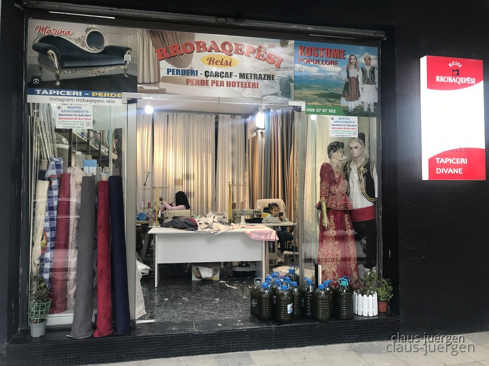 Hier kann man sich nach Maß individuelle Kleindungsstücke anfertigen lassen. Dazu gibt es jetzt im Oktober auch Olivenöl für 8 Euro der Liter zu kaufen.