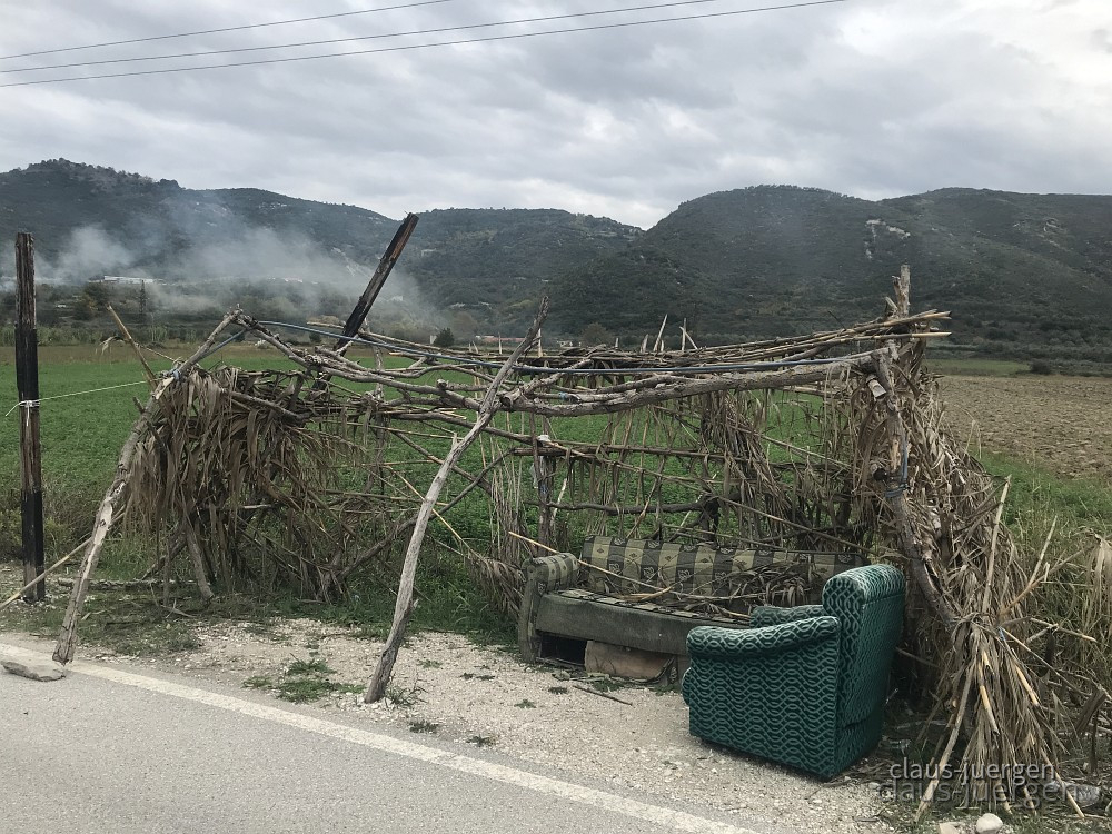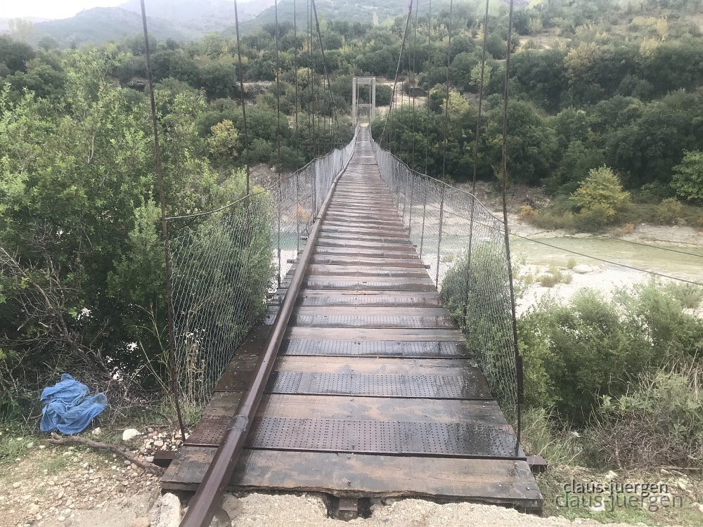 Mir war bekannt, daß in diesem abgelegenen Tal noch einige Hängestege und abenteuerliche Brücken vorhanden sein sollen. Diese Hängestege sind für die Bewohner vor allem in der wasserreichen Zeit die einzige Möglichkeit von einer Talseite auf die andere zu wechseln. So nahmen wir den Bypass Vlora, eine lange Umgehungsstraße auf bzw. hinter den Küstenbergen um auf die SH76 zu gelangen. Die wiederum erschließt dieses Tal.
