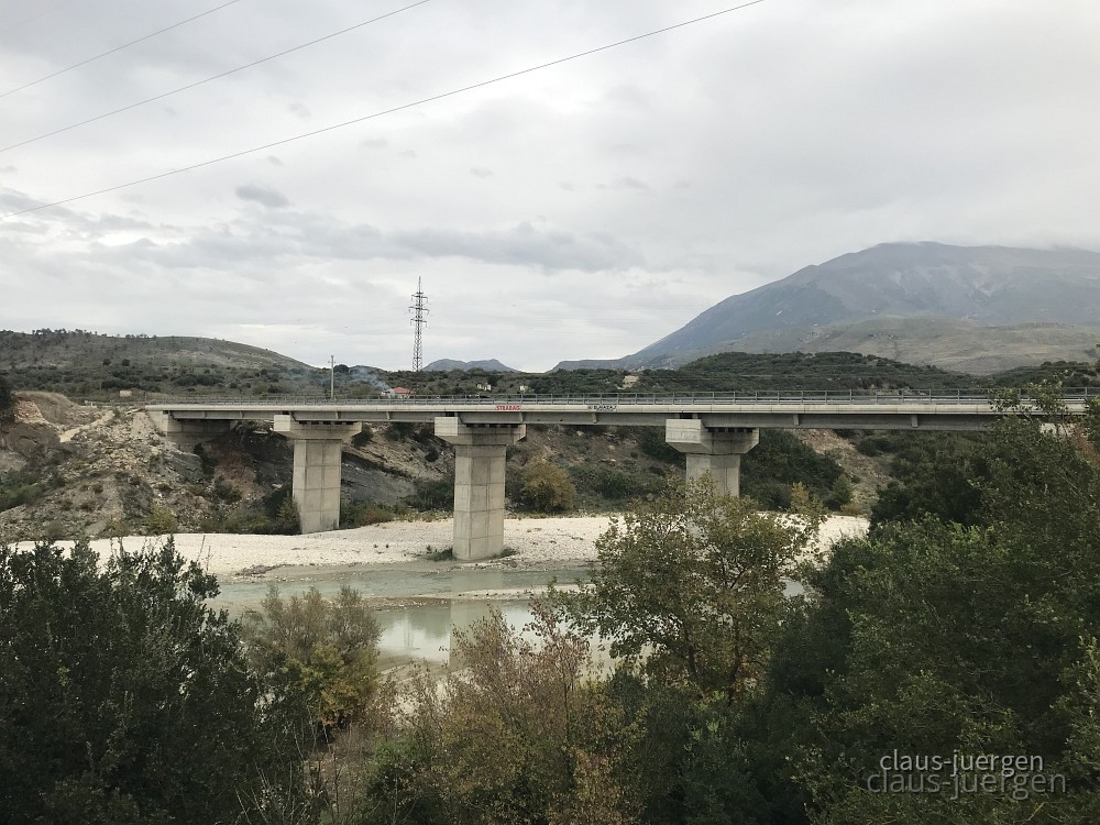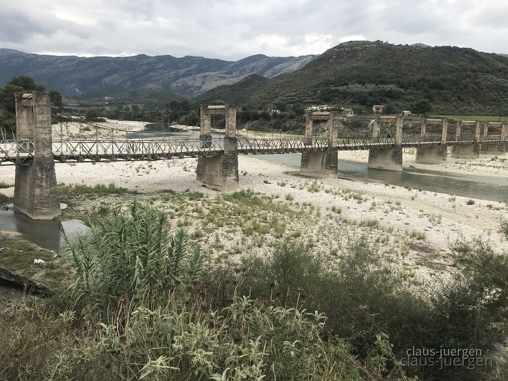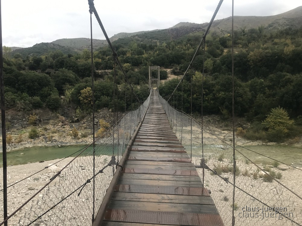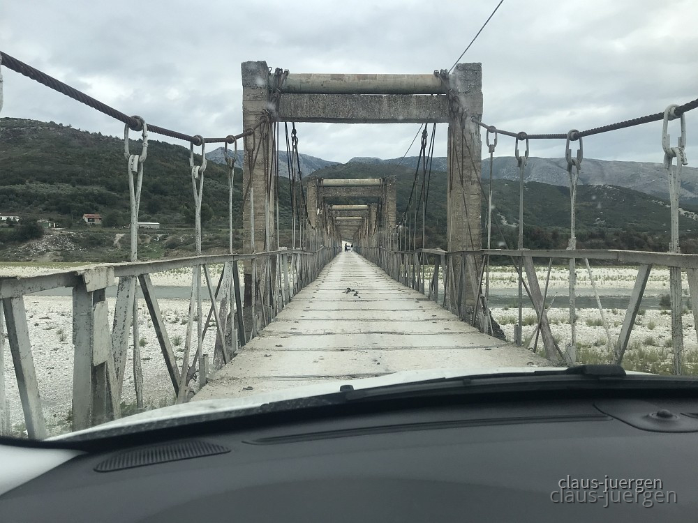 Mir war bekannt, daß in diesem abgelegenen Tal noch einige Hängestege und abenteuerliche Brücken vorhanden sein sollen. Diese Hängestege sind für die Bewohner vor allem in der wasserreichen Zeit die einzige Möglichkeit von einer Talseite auf die andere zu wechseln. So nahmen wir den Bypass Vlora, eine lange Umgehungsstraße auf bzw. hinter den Küstenbergen um auf die SH76 zu gelangen. Die wiederum erschließt dieses Tal.