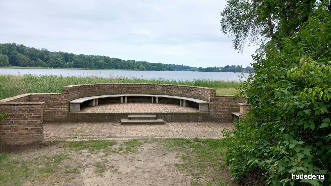 Und hier vom Gelände des Sacrower Schlosses aus ganz hinten in der Ferne zu sehen.