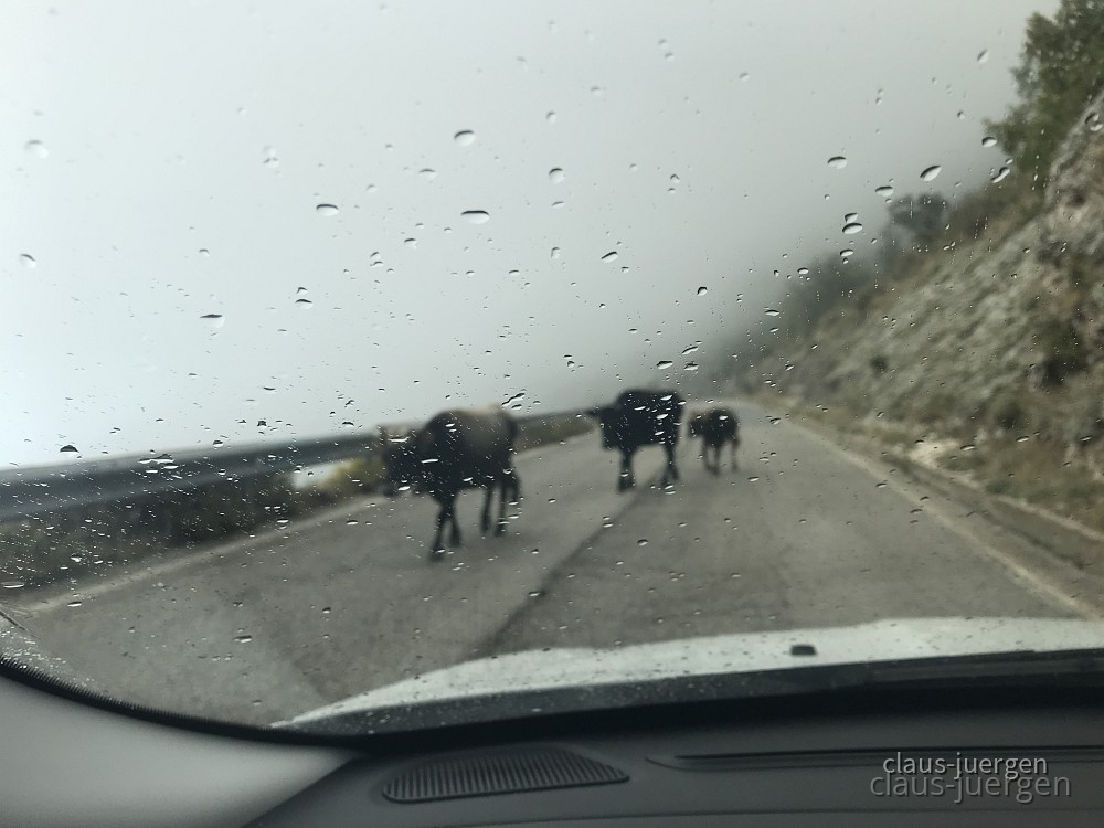 Durch Dhermi sind wir ja bei unserer Fahrt von Saranda nach Vlora bereits gekommen. Nun war dieser Ort eine Art Ersatz für den Llogara Pass. Wir fuhren zwar nach oben. Allerdings war die Sicht in der dichten Wolkenwand mehr als bescheiden. Dazu ab und an ein paar Regentropfen. Da war also nix mit Wanderung oder Bunker anschauen oder was auch immer.