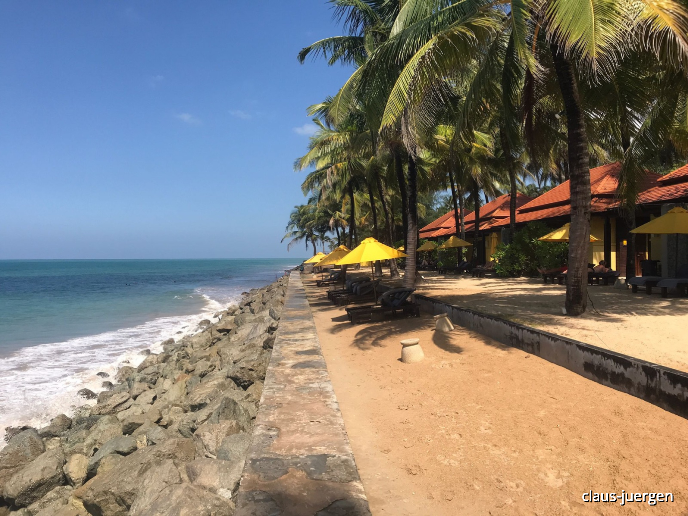 Erst nach etwa einem weiteren Kilometer kommt das Hotel „Devasom“, dann nach wieder einem km das Marriott und nach weiteren 2 km unser Apsara. Du siehst also Heiko, dass man hier viele Kilometer am Strand entlang laufen kann und nur ab und zu ein Luxus Hotel dort steht. Beim Marriott und beim Apsara ist mir im Vorjahr aufgefallen, dass da doch ein paar Urlauber auch im Meer baden. All diese Hotels direkt am Strand haben natürlich enorm viel Platz und großzügige Grünanlagen. Dafür liegen sie weit abseits. Es gibt zwar in unmittelbarer Nähe einfache Strandbars in welchen wir im Falle unserer Aufenthalte in den letzten beiden Jahren im Apsara meist gegessen haben. Will man aber etwas mehr sehen oder unternehmen oder das Nachtleben genießen, ist man auf einen Roller oder ein Taxi angewiesen.
