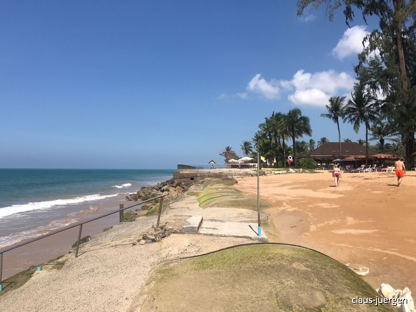 Da wo ich mein Hotel habe, endet der Strand von Bang Niang. Der ist seit wenigen Wochen nicht mehr das was er einmal war. Ein großer Sturm mit sehr hohen Wellen hat große Teile des Strandes zerstört. Viel Sand wurde abgetragen. Aber auch Gebäude wurden zerstört.
