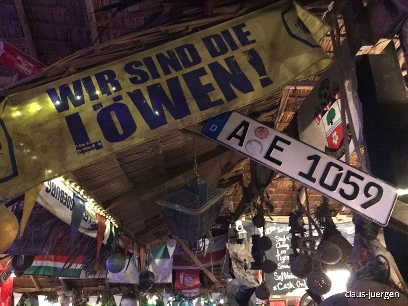 Gestern Abend war ich noch einmal in der Musikbar von Mr Chay um dem Inhaber ein altes Autokennzeichen von mir zu geben. Das dient jetzt neben Schals von Fußballvereinen der Dekoration in der Kneipe.