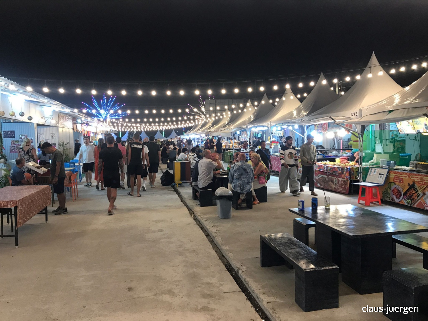 In Bang Niang ist derzeit ein zweiter Markt im Aufbau. Ob sich das rentiert anhand der Tatsache, dass der sogenannte Nacht Markt an vier Tagen in der Woche ab Nachmittag geöffnet hat, weiß ich nicht. Auf jeden Fall sind bei diesem zweiten Markt feste Buden und eine große Bühne mit einer Freifläche davor im Bau. Einen Tag vor Heiligabend waren wir dort und haben uns diesen Markt mal angeschaut.