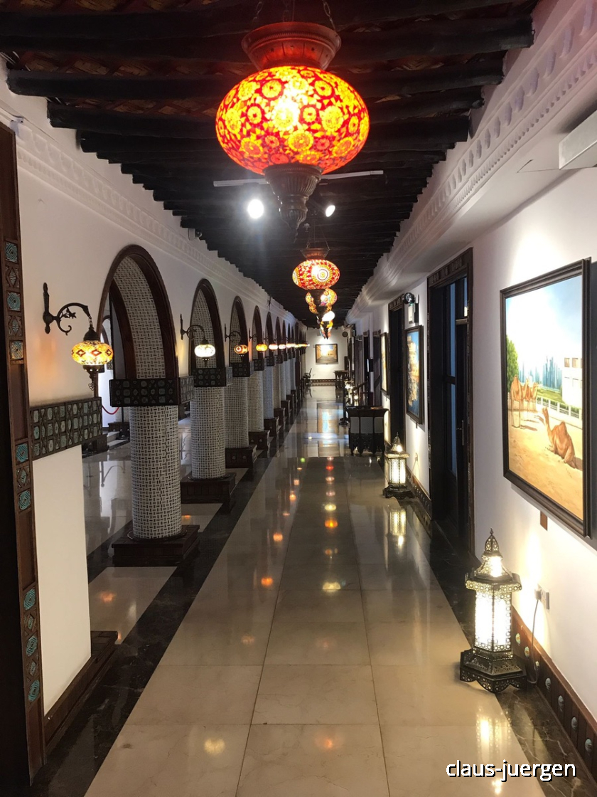 Lediglich in einem dieser Ateliers war ein Maler am Werk. Ich habe mich mit dem Mann aus Marokko unterhalten. Er war gerade dabei, eine Auftragsmalerei auszuführen. Dazu hatte er das Foto eines Piloten in Uniform, welches er abmalte. Der Pilot hat wohl im Rahmen einer Dienstreise nach Doha den Souk besucht und ein Bild von sich in Auftrag gegeben.