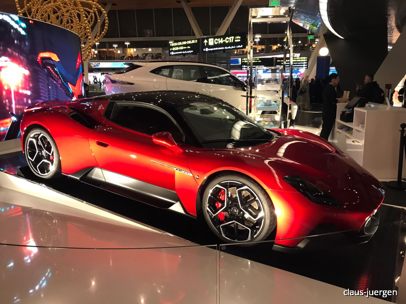 Den Weg von der U-Bahn Station zum Abfluggate über die Immigration kannte ich ja mittlerweile vom Vortag.Dabei passierte ich auch eine Ausstellung von Hochleistungssportwagen und einem Formel-1-Boliden. Wie bereits oben erwähnt sollte zwei Tage später das Formel 1 Rennen im Land stattfinden. Nachdem ich kein Fan dieser Sportart bin weiß ich auch gar nicht, welcher Fahrer mit welchem Auto gewonnen hat. Tom kann uns das sicherlich sagen.