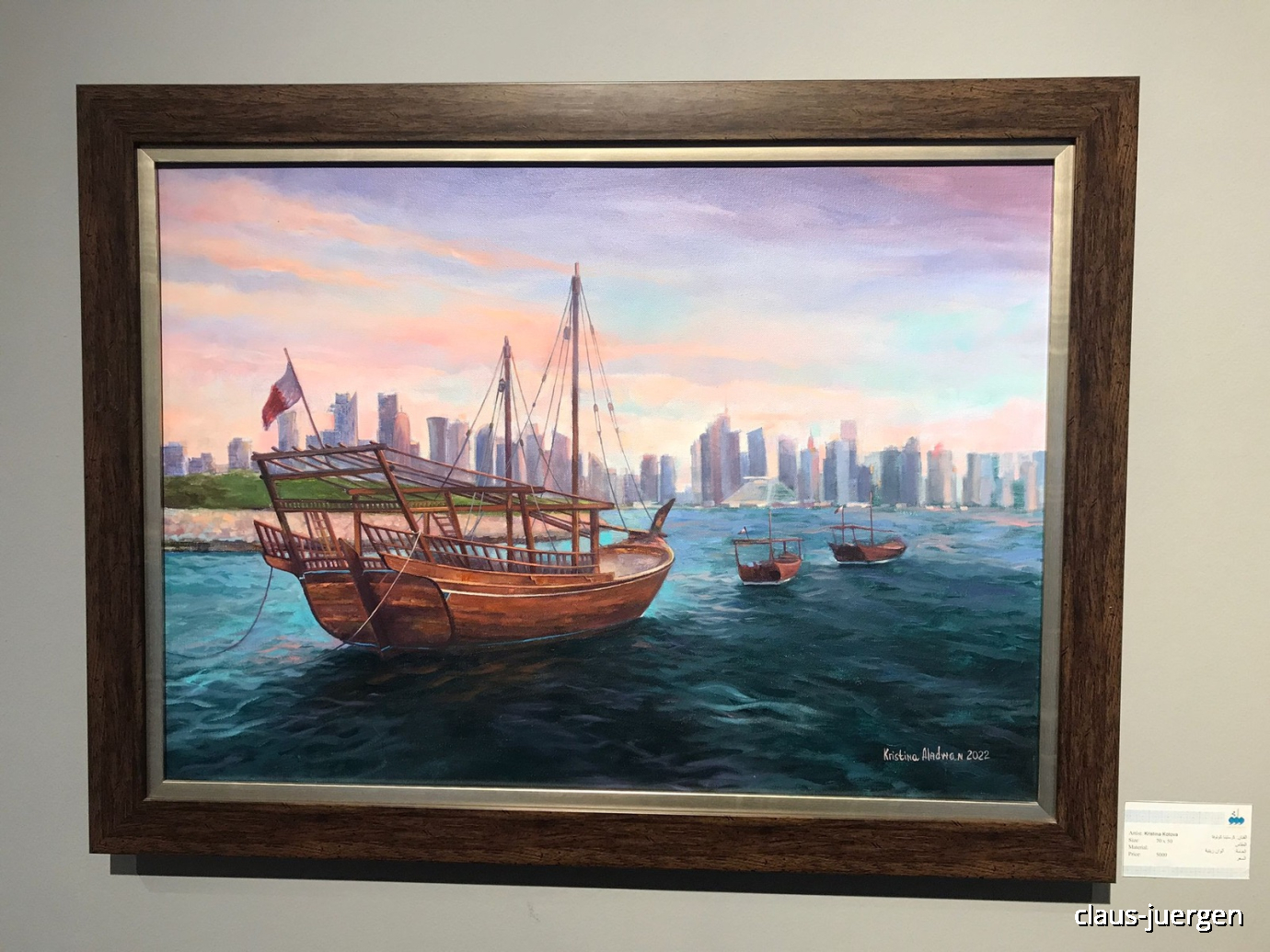 Ich zeige euch ein paar Bilder. Die Motive sind überwiegend mit dem Land verbunden und zeigen sowohl zeitgenössische Darstellungen als auch die Vergangenheit von Qatar.