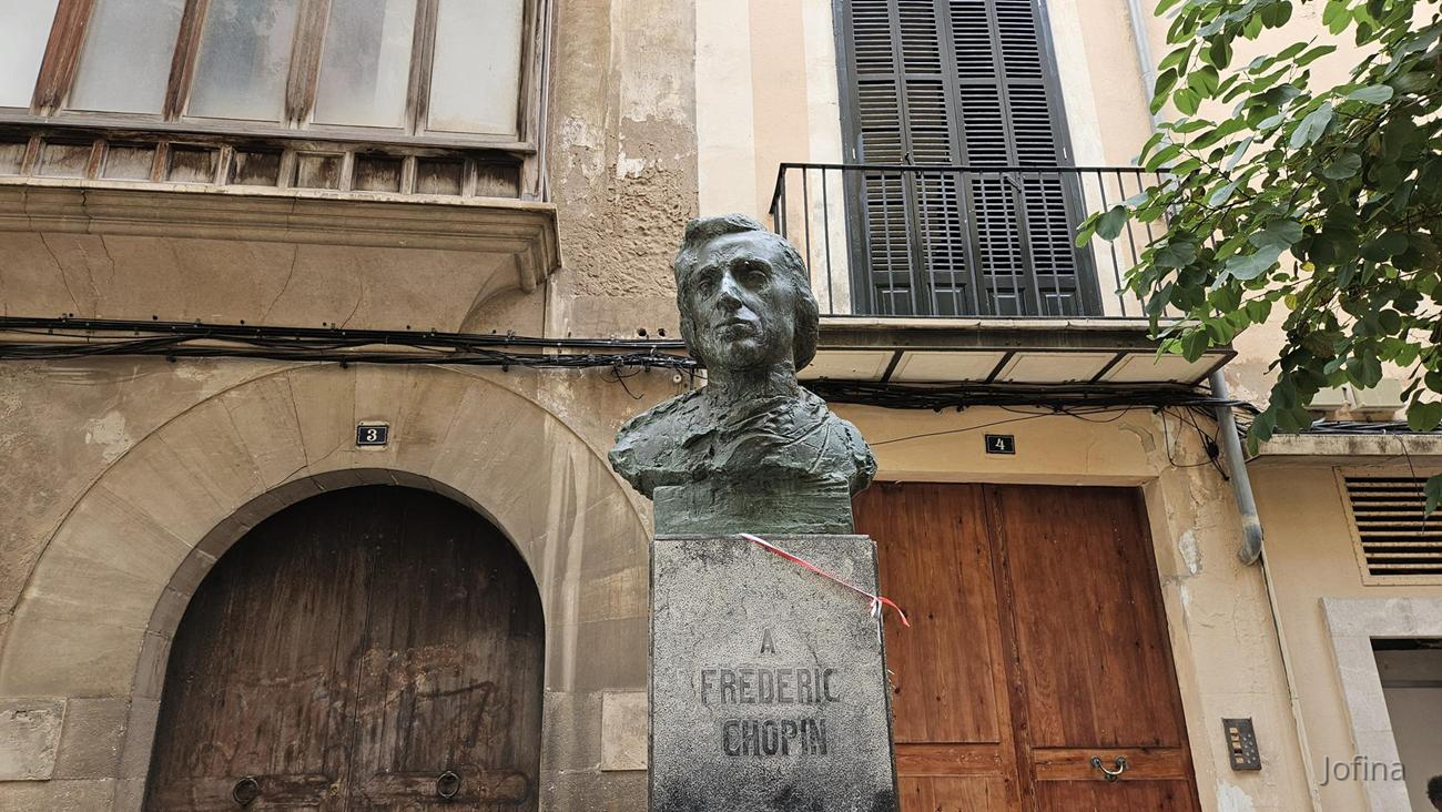 Nun noch einige interessante Hingucker in der Altstadt, wie die Büste von Frederic Chopin, eine strickende Mallorquinerin und eine besonders schöne Skulptur vom Erzengel Michael, der mit dem Drachen kämpft.