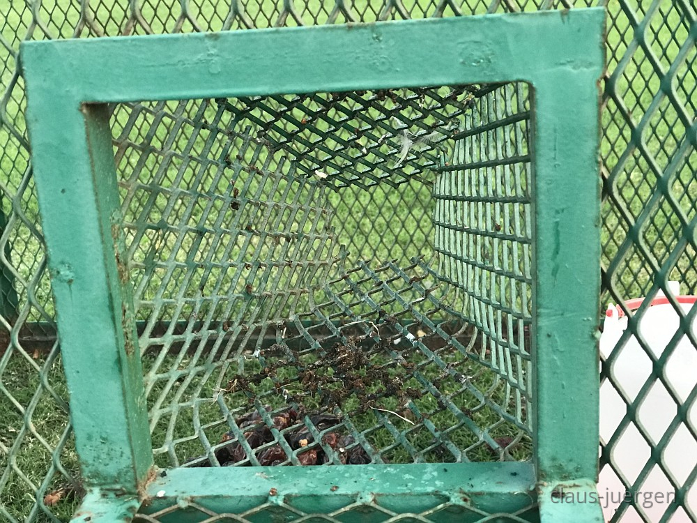 ...innen und Futterschüssel und eine Wasserschale, vielleicht ein Käfig zum Einfangen von Tieren. LG Rudi
