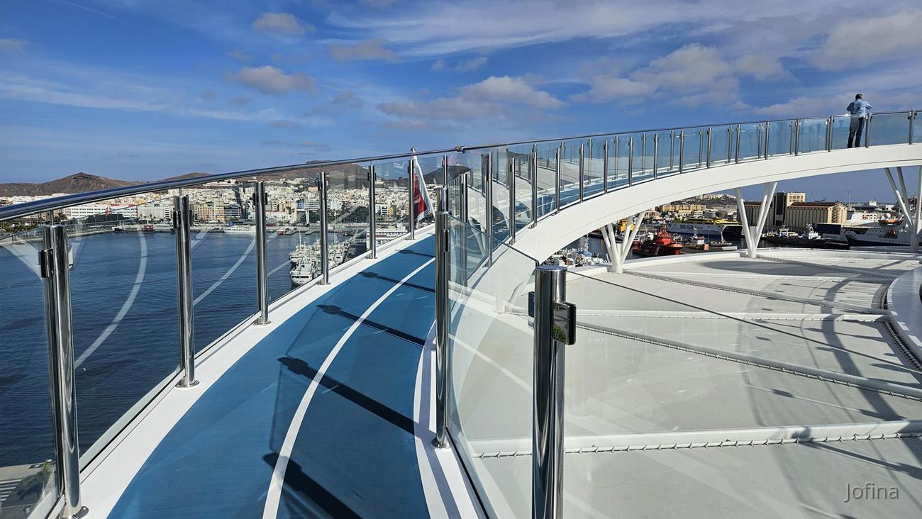 Nach einem ausgiebigen Frühstück und einem ersten Drink (Aperol) auf Deck 14 (Pooldeck) betrat ich den Skywalk für die ersten Fotos.