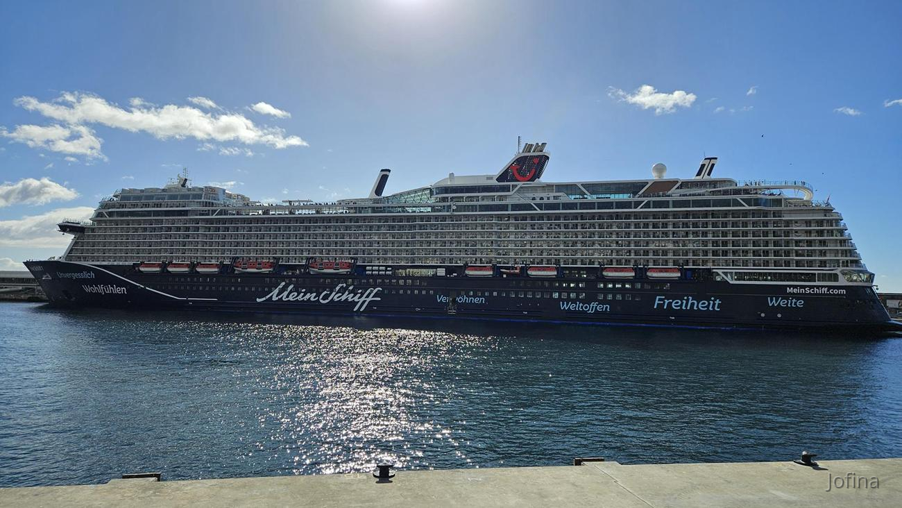 Der erste Stopp war ein Blick auf den Kreuzfahrthafen mit der Mein Schiff 7 und dahinter ein kleineres AIDA-Schiff.