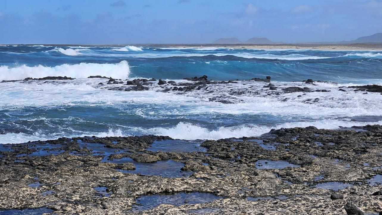 Nicht weit davon war der nächste Halt beim rot-weiß- gestreiften Leuchtturm „Faro del Tostón“ in der Nähe des Ortes El Cotillo. Hier ist das Meer sehr aufgewühlt.
